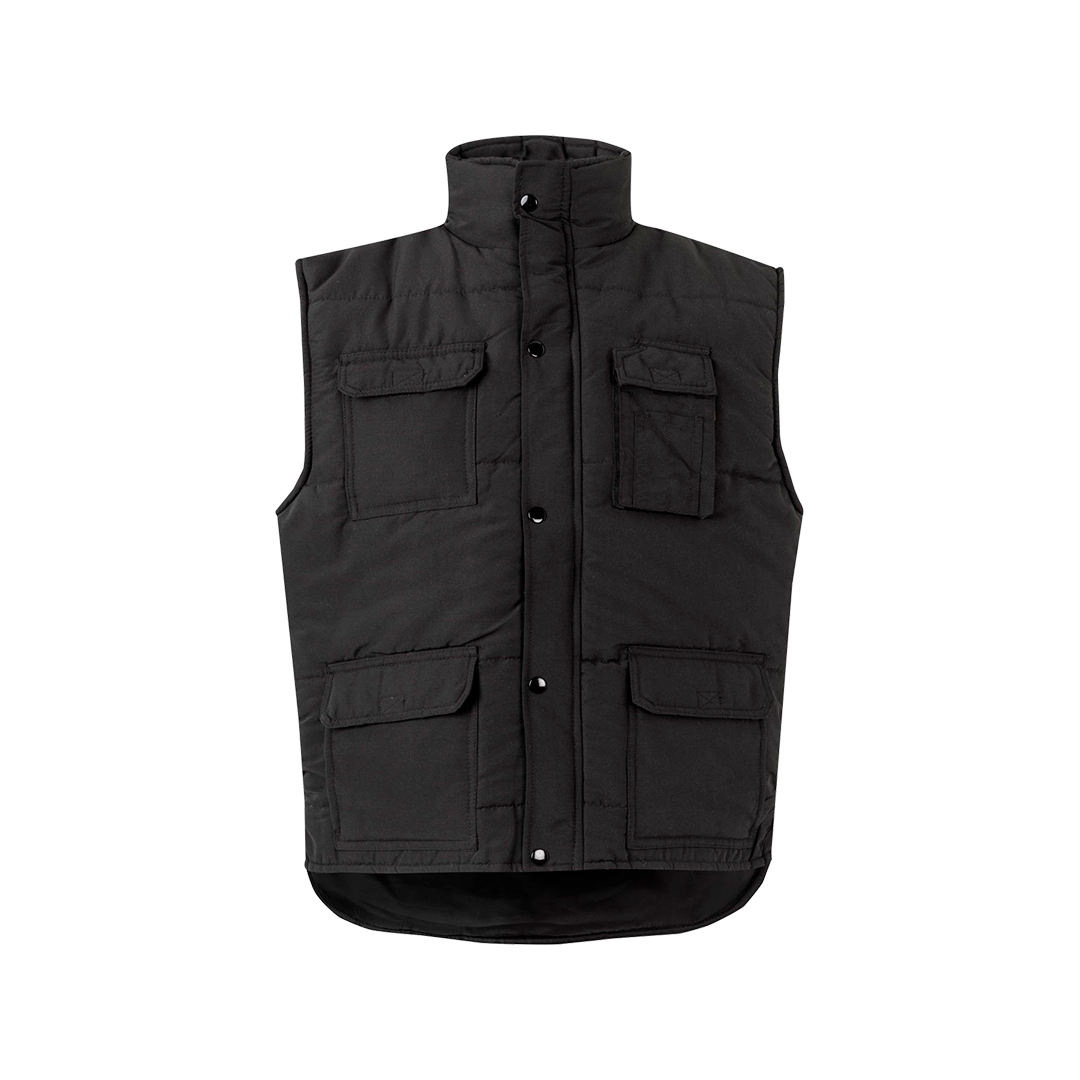 1 bolsillo de fuelle en el pecho, con tapeta y velcro. Sobre él, compartimentos para bolígrafos
